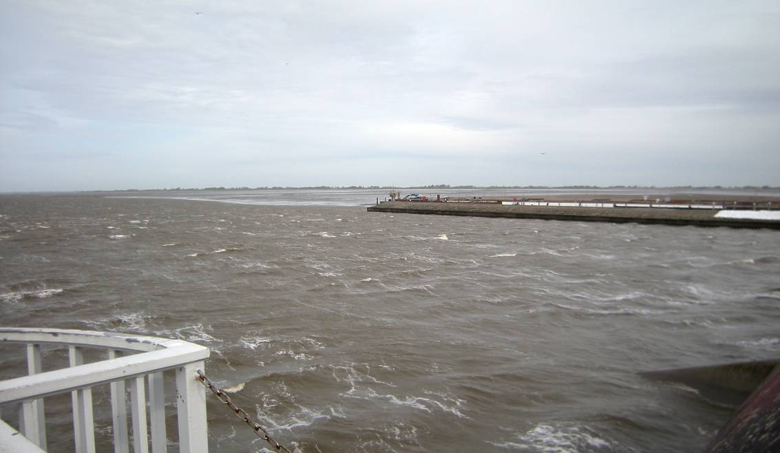 Am Eidersperrwerk Wind, Wind, WindNordsee: Viel Küste, noch mehr Inseln. Doch wo ist das Wasser? Am Eidersperrwerk wollten wir aufs Wasser gucken. Die Eider ist ein Flüßchen in Nordfriesland. Wind, Wind. Wind, da kommt kein Urlaubsfeeling auf!