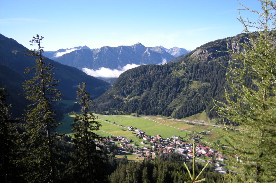 Ein wenig aufgestiegen kann der Wanderer auf Nesselwängle hinunterblicken.