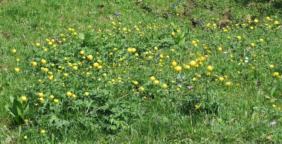 Fellhorn und Umgebung besondere Blumen aller Art. Hier Trollblumen in großer Zahl.