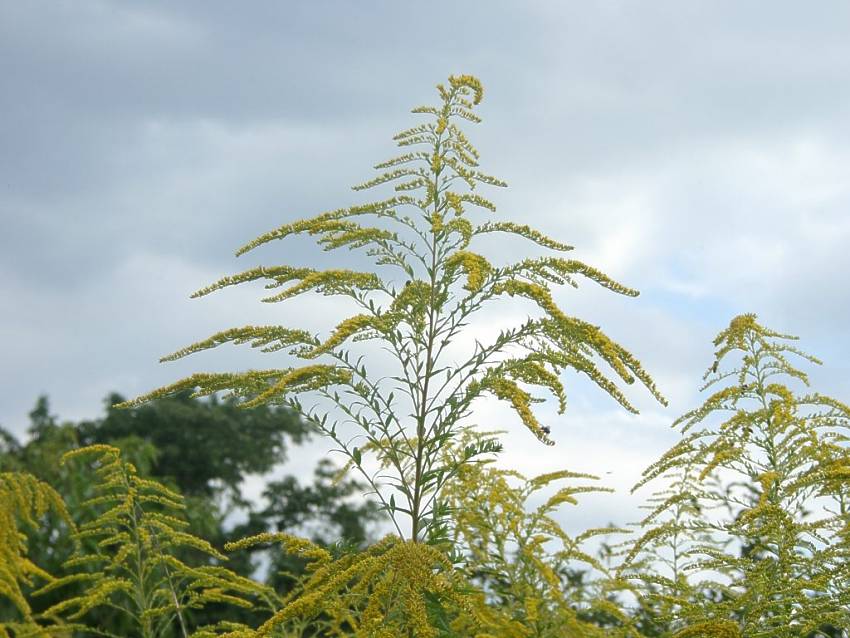 Die Goldrute (kanadische) ist natürlich auch ein zähes Unkraut. Ganze Felder wuchert sie zu.