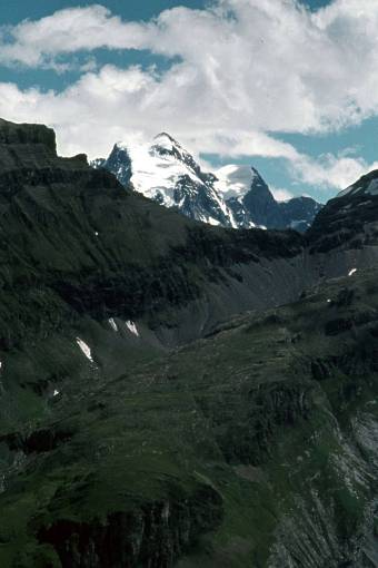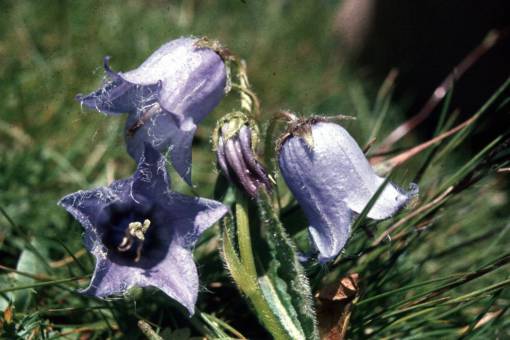 Neben den vielen Glockenblumen auf den Wiesen auch der Blick durch die Sefinenfurke zum Gipfel der Jungfrau.