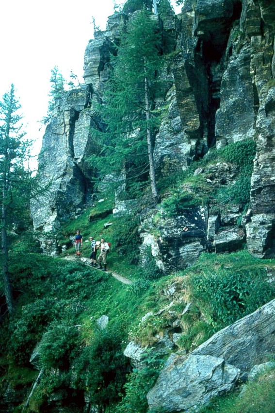 Gewaltig türmen sich die Felsen über den Wanderern. So arg stabil sehen sie auch nicht aus.