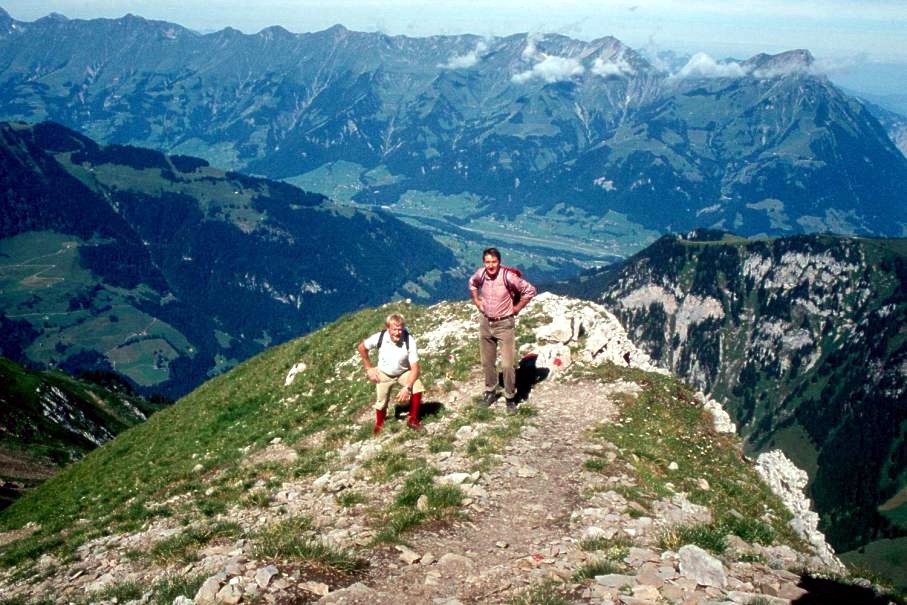 Geradeaus steil hinauf, links und rechts steil hinunter. “Da wäre ich doch besser an die Arbeit gegangen”, hat einer der beiden gesagt.