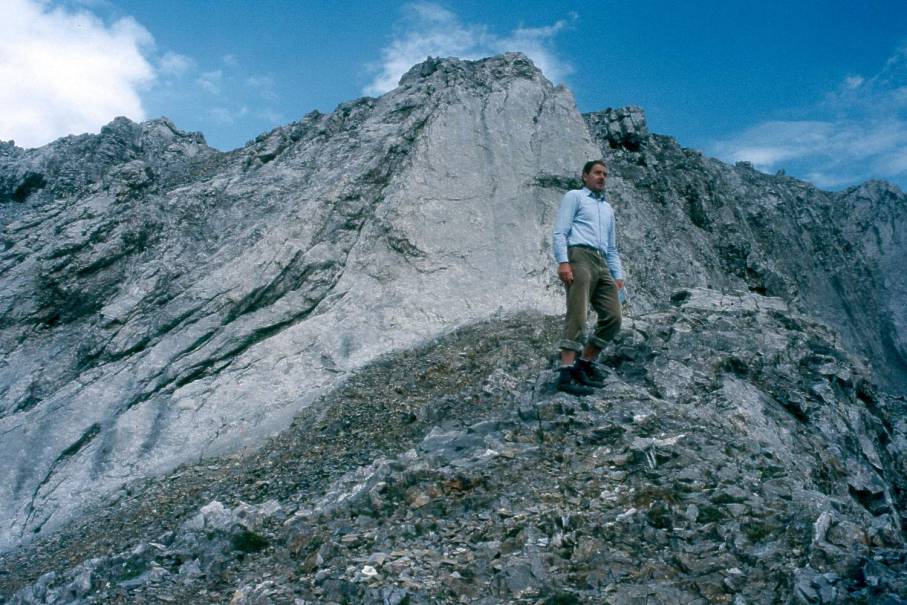 Wer auf den Ärmighorngipfel will, hat hinten das Wändchen zu erklimmen. Doch der Gipfel war so luftig, dass der Fotograf sich oben ganz klein gemacht hat.