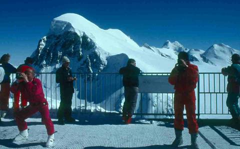 Die Anreise aus dem Berner Oberland: -per Auto von Reichenbach nach Kandersteg, -per Autozug von Kandersteg nach Goppenstein, -per Auto von Goppenstein hinunter in das Rhonetal - Visp - Parkplatz Täsch, -mit dem Zug von Täsch nach Zermatt, -per zu Fuß gute 30 Minuten mit den Skistiefeln und den Skiern auf dem Rücken durch Zermatt zur Seilbahn, -mit der Seilbahn zweimal umsteigen(?) zum Kleinen Matterhorn.