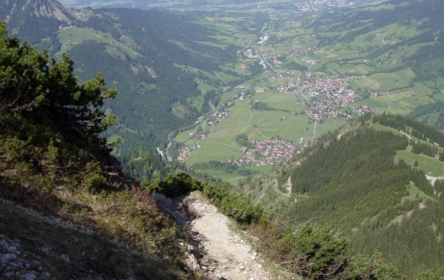 Schöne Rundherumsicht vom Iseleranstieg. Hier das Ostrachtal.