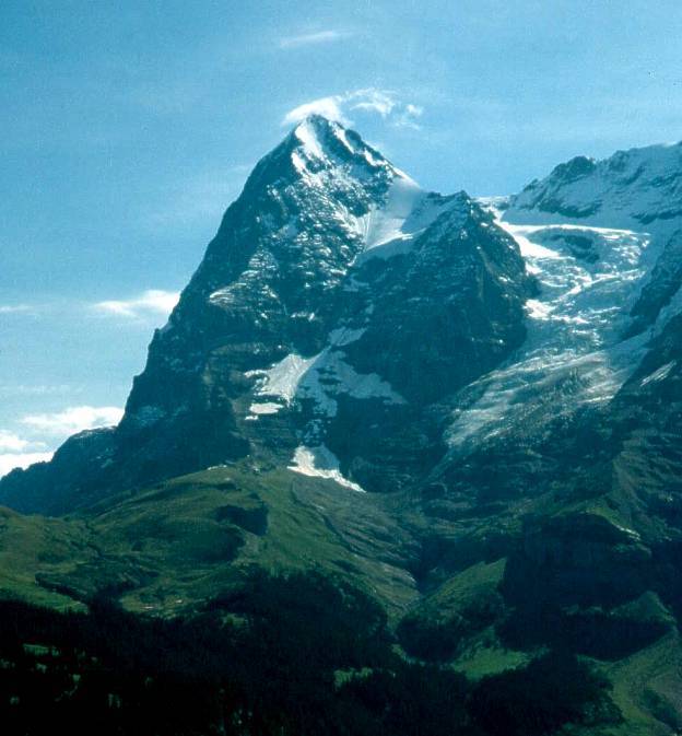 Grütschalp - Mürren, ein herrlicher Panoramaweg. Doch am Eiger ist der Wanderer da schon fast vorbeiHeißt die “Fahne” auf dem Eigergipfel schon schlechtes Wetter oben? Sind es nur Quellwolken oder schneit es dort schon?