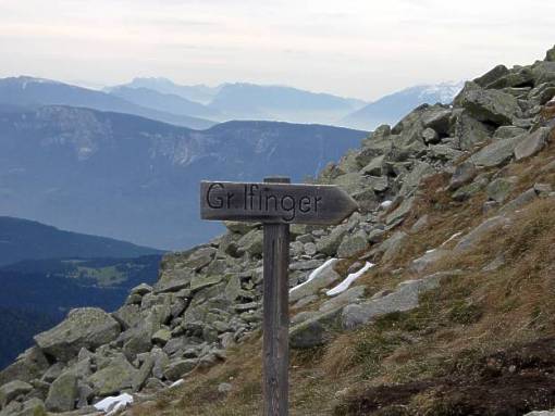 Den Wegweiser “Gr. Ifinger” trifft der Wanderer erst, wenn er über die Kuhleitenhütte 2.20 Stunden aufgestiegen ist.