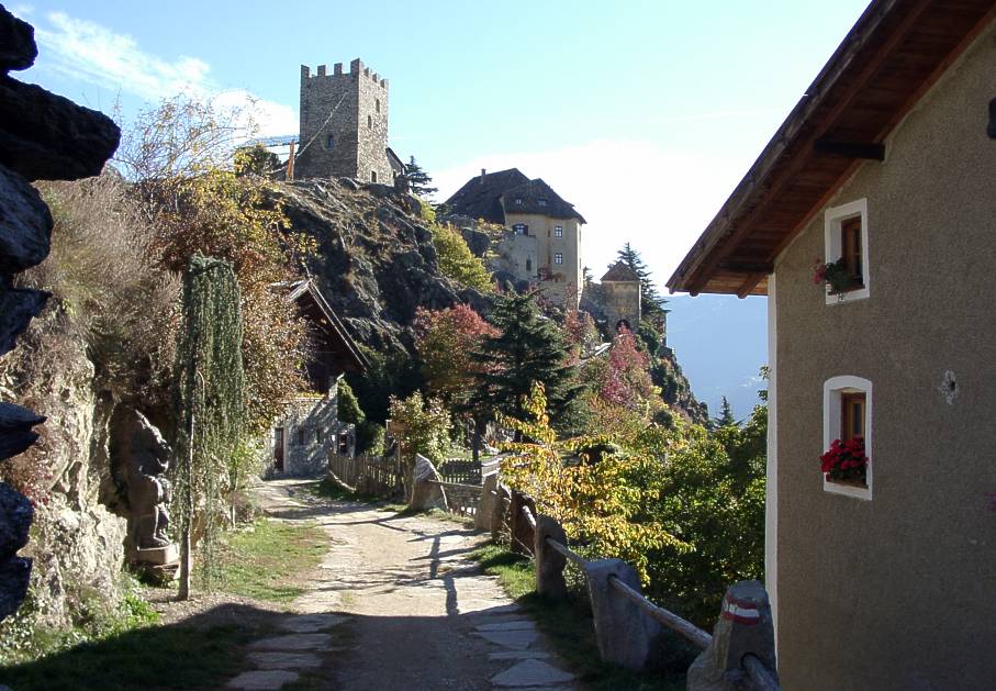 Nachtrag Bozenbesuch 16.10.2002: Vor dem ordentlichen Messnerladen ein etwas abgerrisener Messnerpappkamerad und dann diese Gasse und die Fortsetzung, die Laubengasse, schmutzig wäre geschmeichelt. Vor diesen bemerkenswert sauberen Läden mit den ansprechenden Auslagen ein Dreck, ein Schmutz, unbeschreiblich. Putz brökelt von den Laubengängen, Farbe von den Fassaden, Kippen überall. Dazwischen sitzen noch Menschen und lassen sich bewirten. Ich hätte da, mangels Vertrauen in die Sauber- und Brauchbarkeit, noch nicht einmal einen Sack Zement gekauft. Die Beschreibung der heruntergekommenden Fassaden am Ende der Laubengasse erspare ich mir.