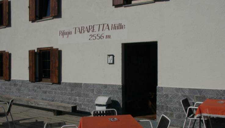 Tischdecken! Alles auffällig sauber und ordentlich vor der und um die Tabarettahütte herum. Warum? Sie ist in Privatbesitz.