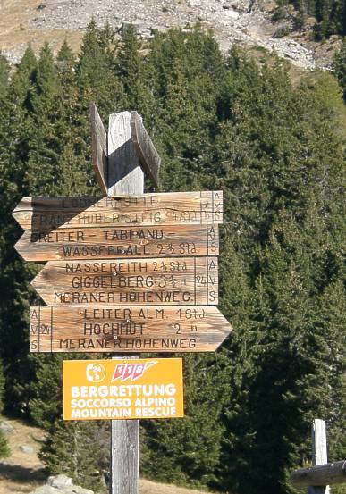 Ein seltener Fall. Am Hochganghaus sogar Wegweiser mit Zeitangaben.