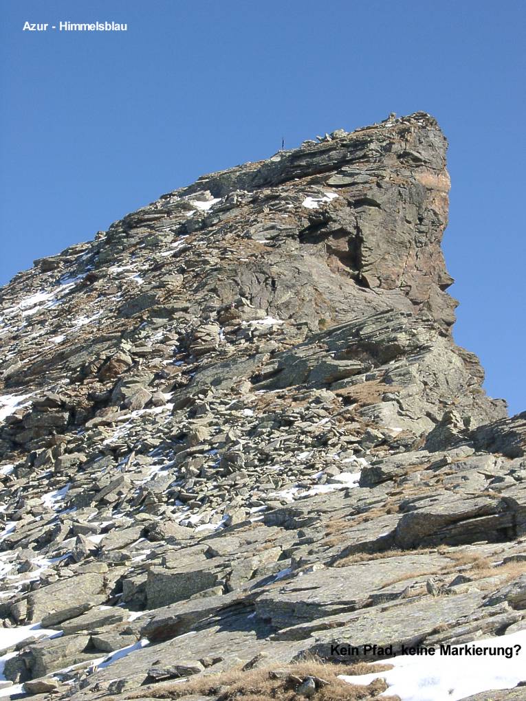 Der Weg zum Gipfel gut markiert, stets eine Wegspur vorhanden, mitunter werden allerdings auch die Hände zum Hinaufkommen gebraucht.