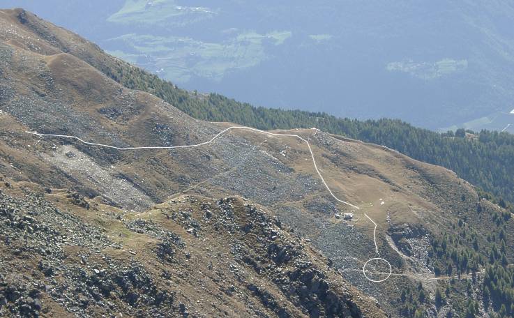 Verlaufen! Dort wo der Kreis sich befindet, sollte der Wander auf die Markierung achten. Marschiert er hier geradeaus weiter, ist das Pfädlein bald zu Ende.