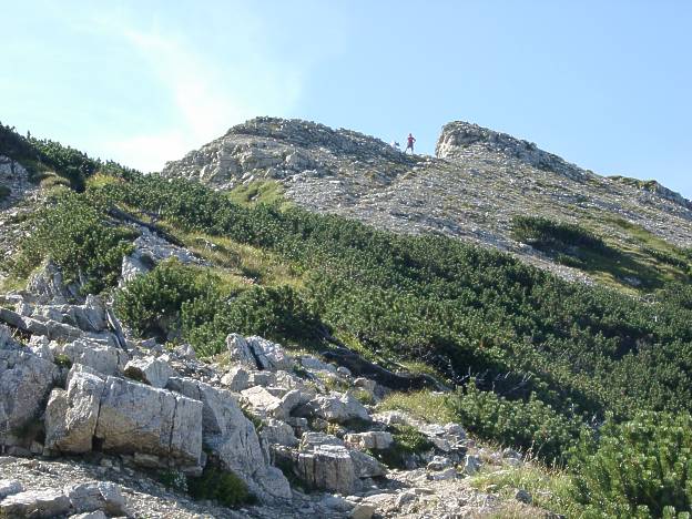 Vom Breitenberg zur Rotspitze oder zum Großen Daumen führt nur eine Gratwanderung. Wie weit und wie anspruchsvoll, gilt es noch zu erkunden (2003).2018 Klettersteig sehr heikel!