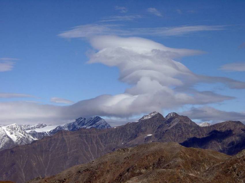 Auch auf der anderen Seite türmen sich die Wolken. Was zeigen sie an? Wind und arg kalte Luft! Siehe Vermoi 01.