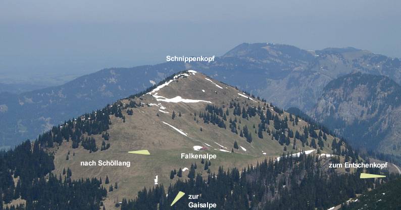 2004 hatten sogar die Grashügel im Mai noch mächtige Schneeflecken. Oberstdorf - Schnippenköpfe “nur” 3.15.