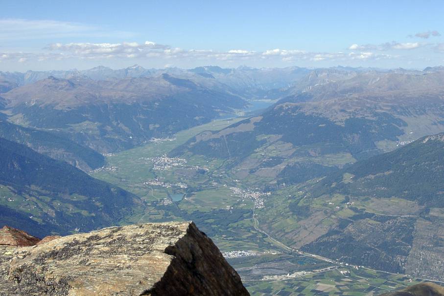 Bis zum Reschensee wird der Vinschgau von der Tschenglser Hochwand überblickt.