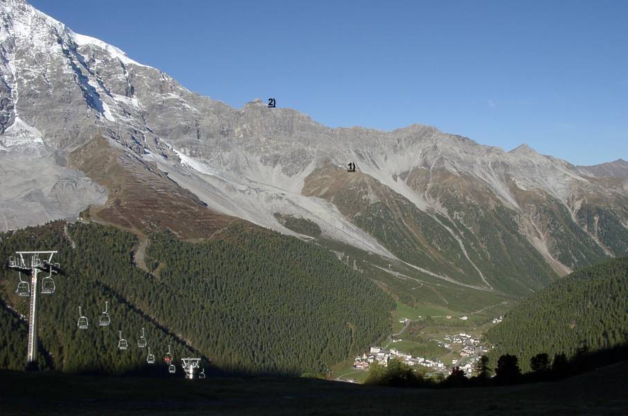 Der Ortskundige weiß es: 1) = Tabarettahütte, 2) Payerhütte. Vier Stunden prächtiger Aufstieg!