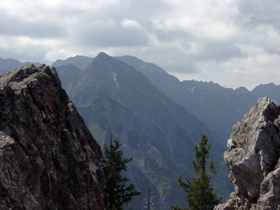Nur eine Stunde hinauf. Doch dann über das Mitterhaus zur Talstation gute drei Stunden hinunter. Bei diesen Wolken fast ein Risiko. Gegenüber die Rotspitze. Vier Stunden vom Parkplatz vor Hinterstein. Gehe nie die Hohen Gänge -von der Rotspitze hinüber zum Breitenberg- lebensgefahr!