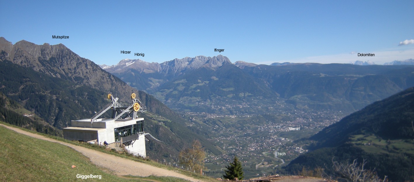 Merane HöhenwegUnterstell - Galmein - Grubhof - Hochforch - Giggelberg 3.30 Stunden; zurück: Giggelberg - Dursterhof - Gruberhof - Naturns/Unterstell Talstation ? Stundenum 0900 ab, um 1800 an!