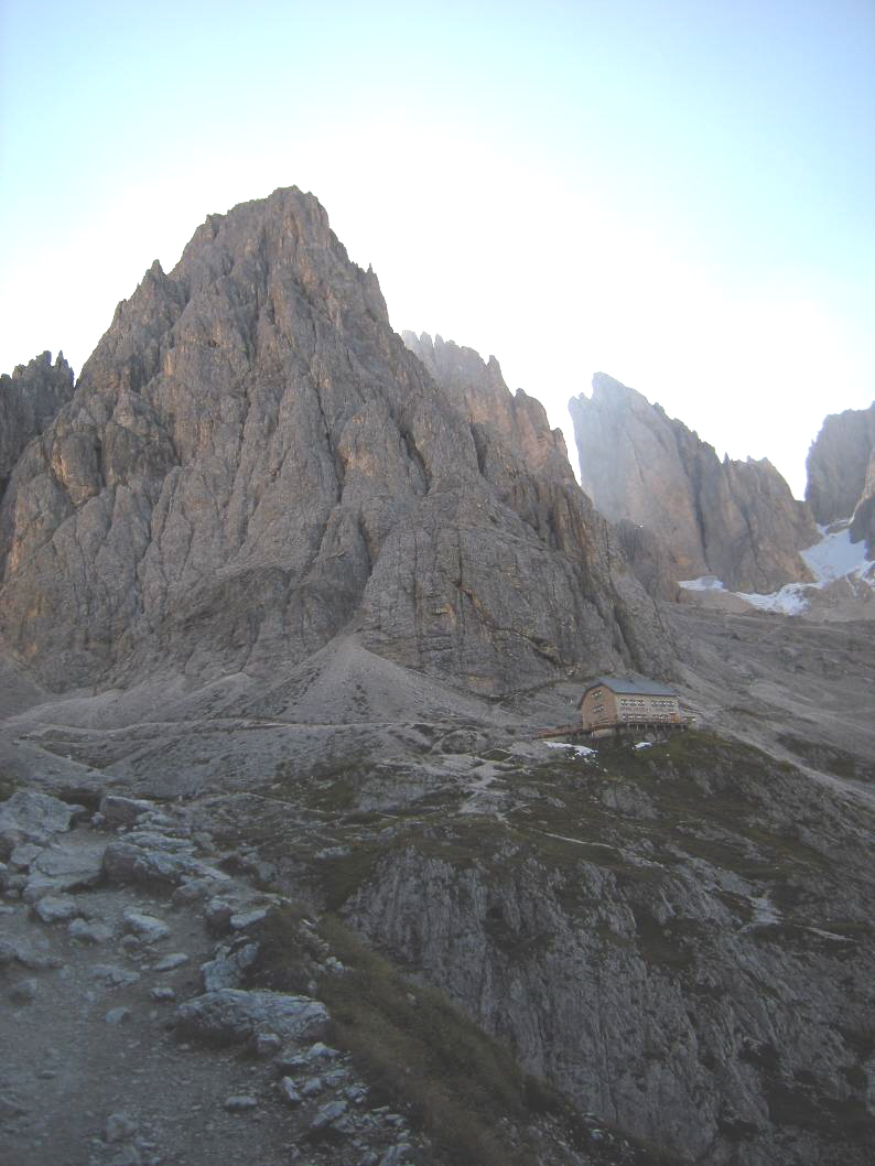 Und noch ein Foto der Langkofelhütte. Da irgendwo steht das Schild Platkofelhütte 1.40 Stunden.
