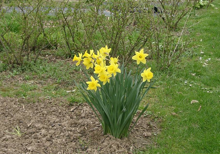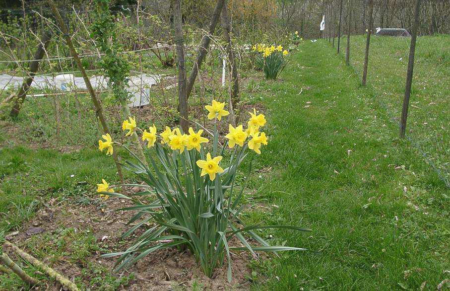 Osterglocken wachsen an vielen Stellen im Garten am Schmellenberg. Sie kommen auch immer wieder, weil die Wühlmäuse, im Gegensatz zu den Tulpenzwiebeln, ihre Zwiebeln verschmähen.