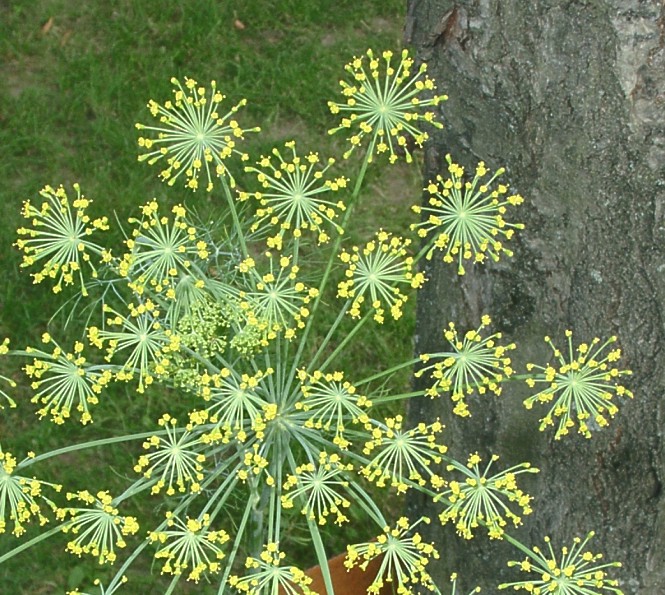 Die Dillblüten sind sogar in der Blumenvase schön anzusehen! Hier die Dillspitzen für den grünen und den Gurkensalat. Mühsam ist der Dill jeweils vom Unkraut, neudeutsch Wildkräuter, zu befreien. Dillblüten. Nur schön anzusehen oder auch zu verwenden? Selbstverständlich! Zum Einkochen der Gurken gehören sie ebenso wie der ausgereifte Samen.