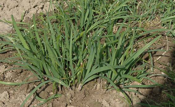Knoblauchschnittlauch, ziemlich robust. Er hat breite Blätter.Blüht auch und sät sich selber aus.